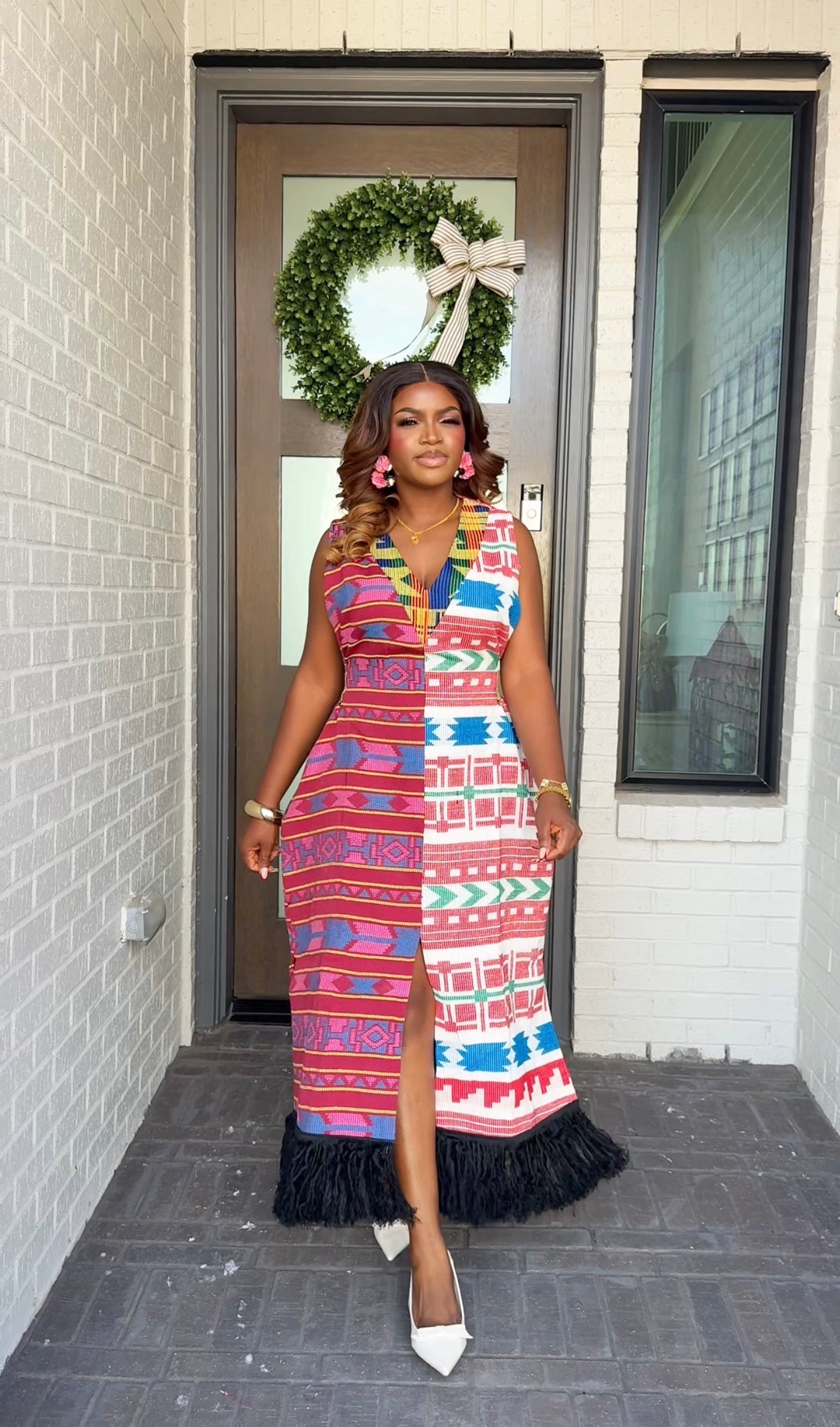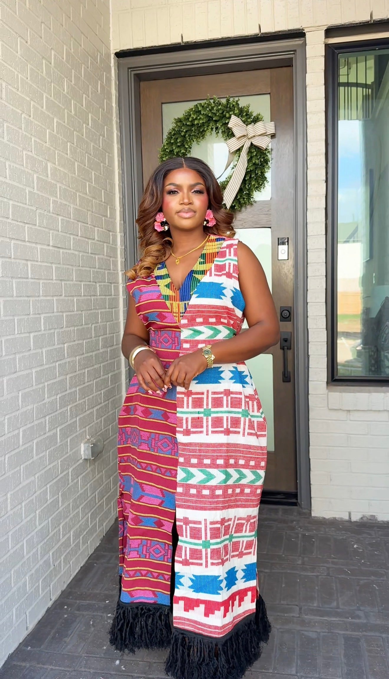 Crafted from authentic handwoven Akwaete fabric, this statement dress is a true celebration of culture and elegance. Akwaete is known for its rich texture, beautiful structure, and timeless appeal, a fabric that naturally commands attention.